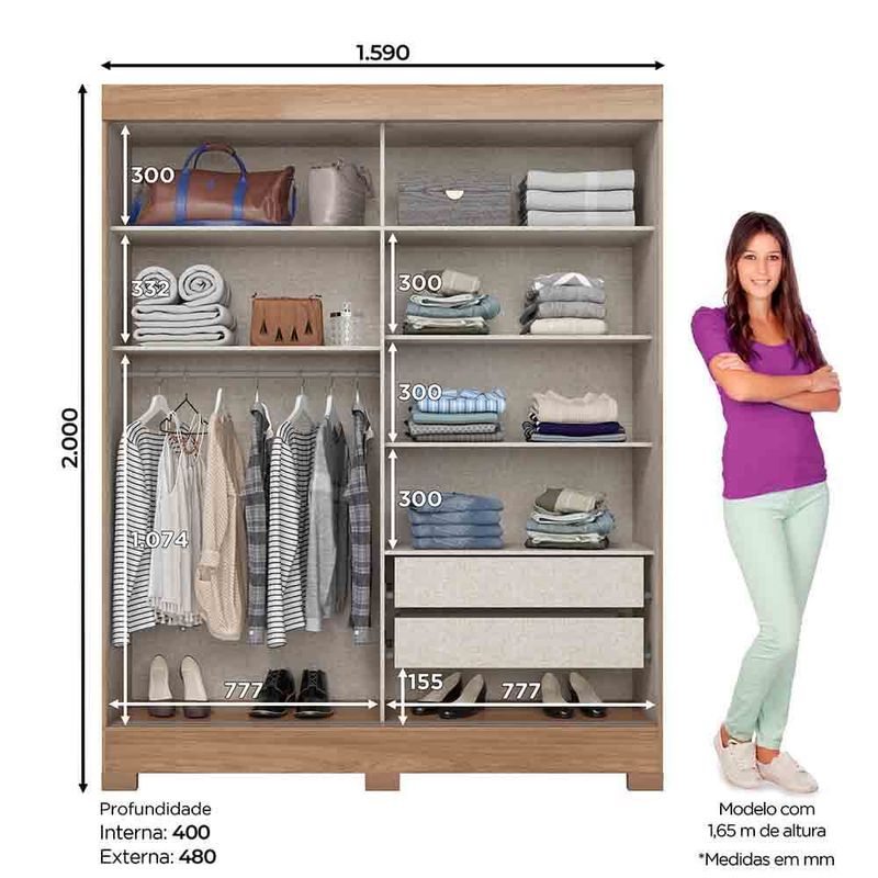 CategoríasHogar y ElectroMuebles de HogarArmario Henn Briz Jequitiba Brillo/Negro 2P B353-210